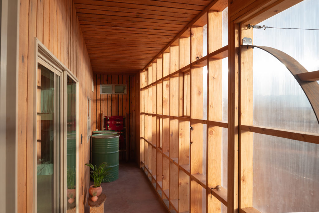 Kinship: Designed as a permanent residence for the mother and daughter to replace an inadequate mobile trailer, the structure is also built to accommodate large family gatherings. Various symbols representing family history are integrated into the design of doors, cabinets, and tiles. The natural plaster wall on the north side functions as a “solar calendar,” featuring a finish intended to record family history.